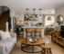 - Pencahayaan gantung yang menciptakan fokus visual saat difungsikan sebagai bar.