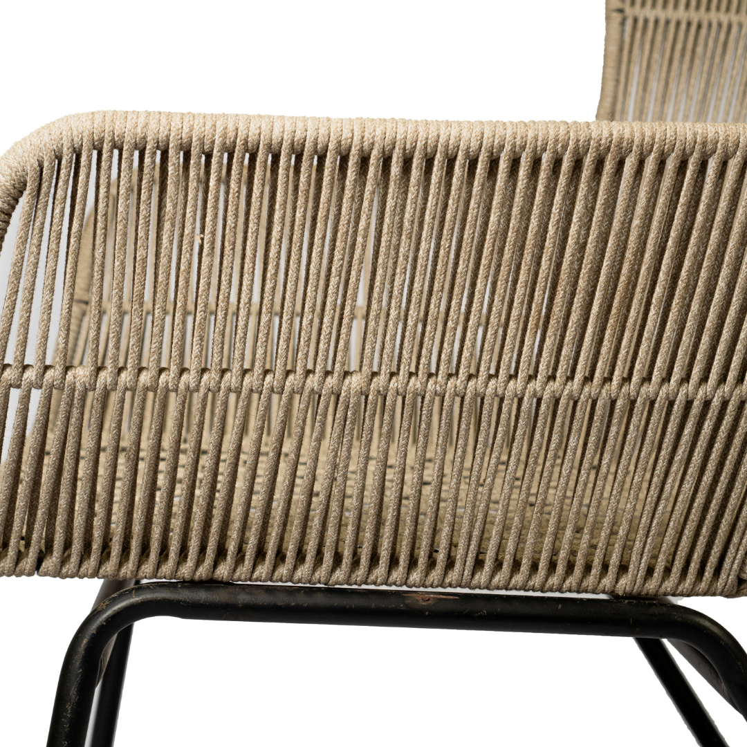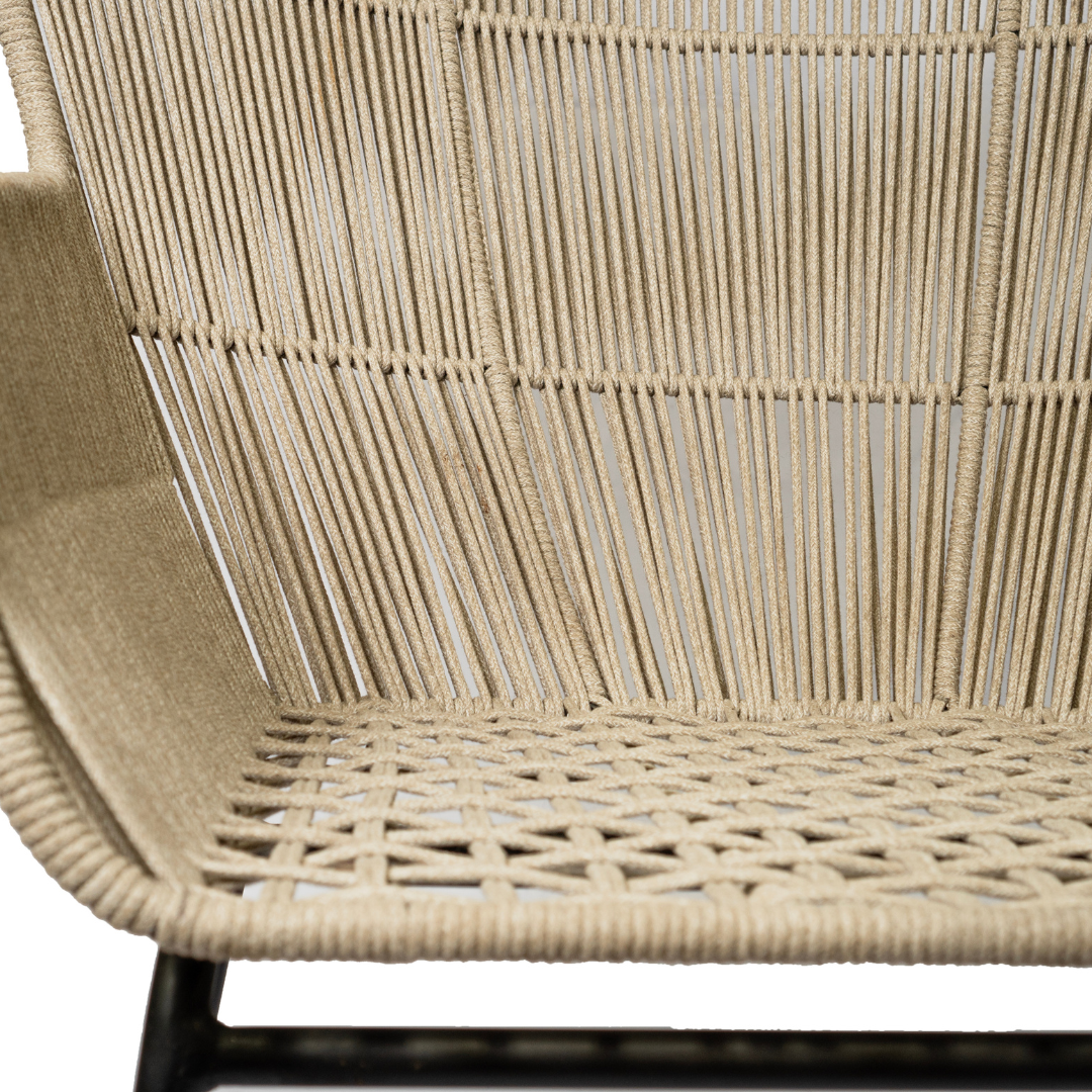 Struktur Dudukan dan Sandaran: Anyaman rotan sintetis berwarna natural beige, tahan terhadap kelembapan dan perubahan cuaca ringan.