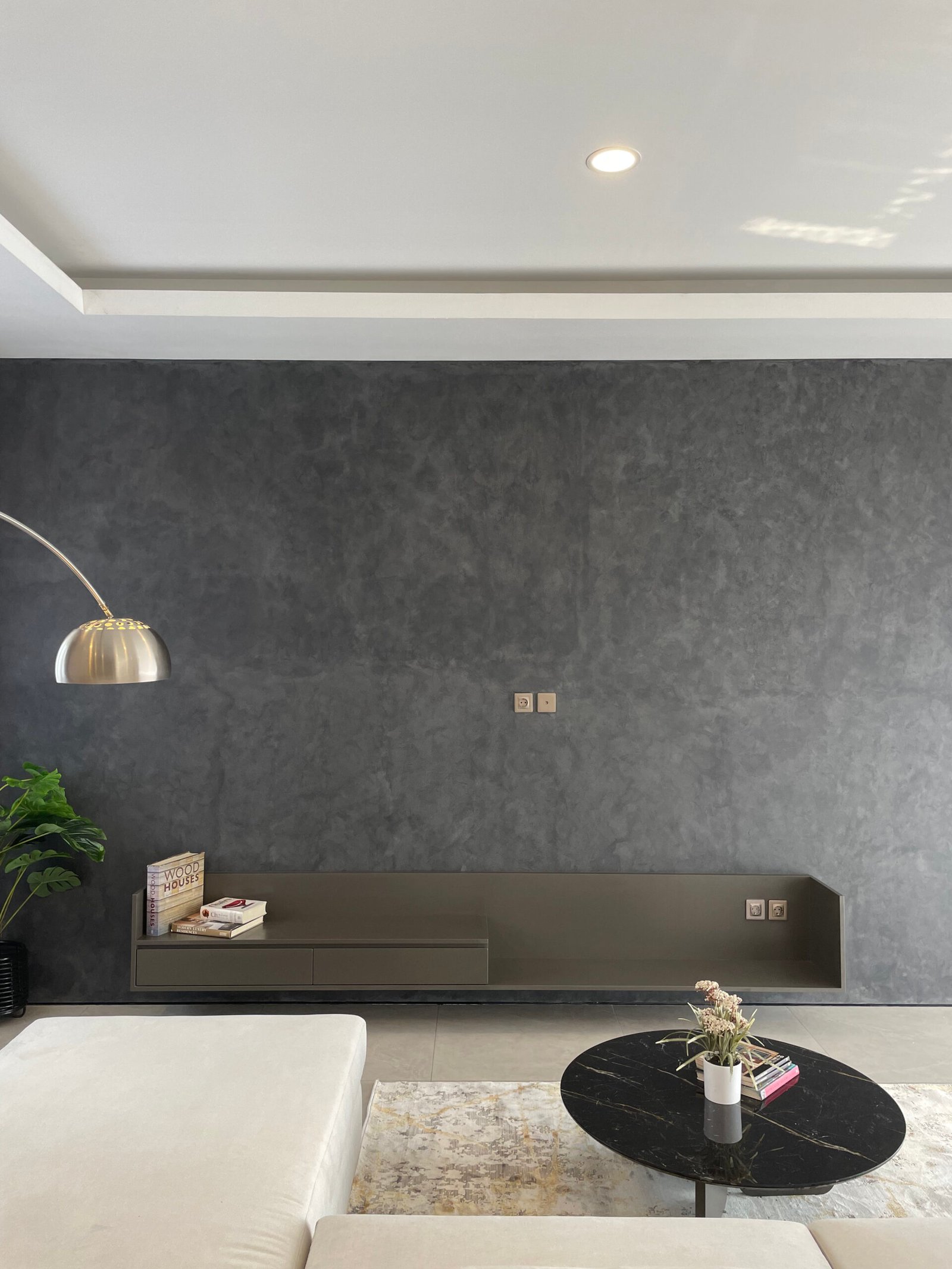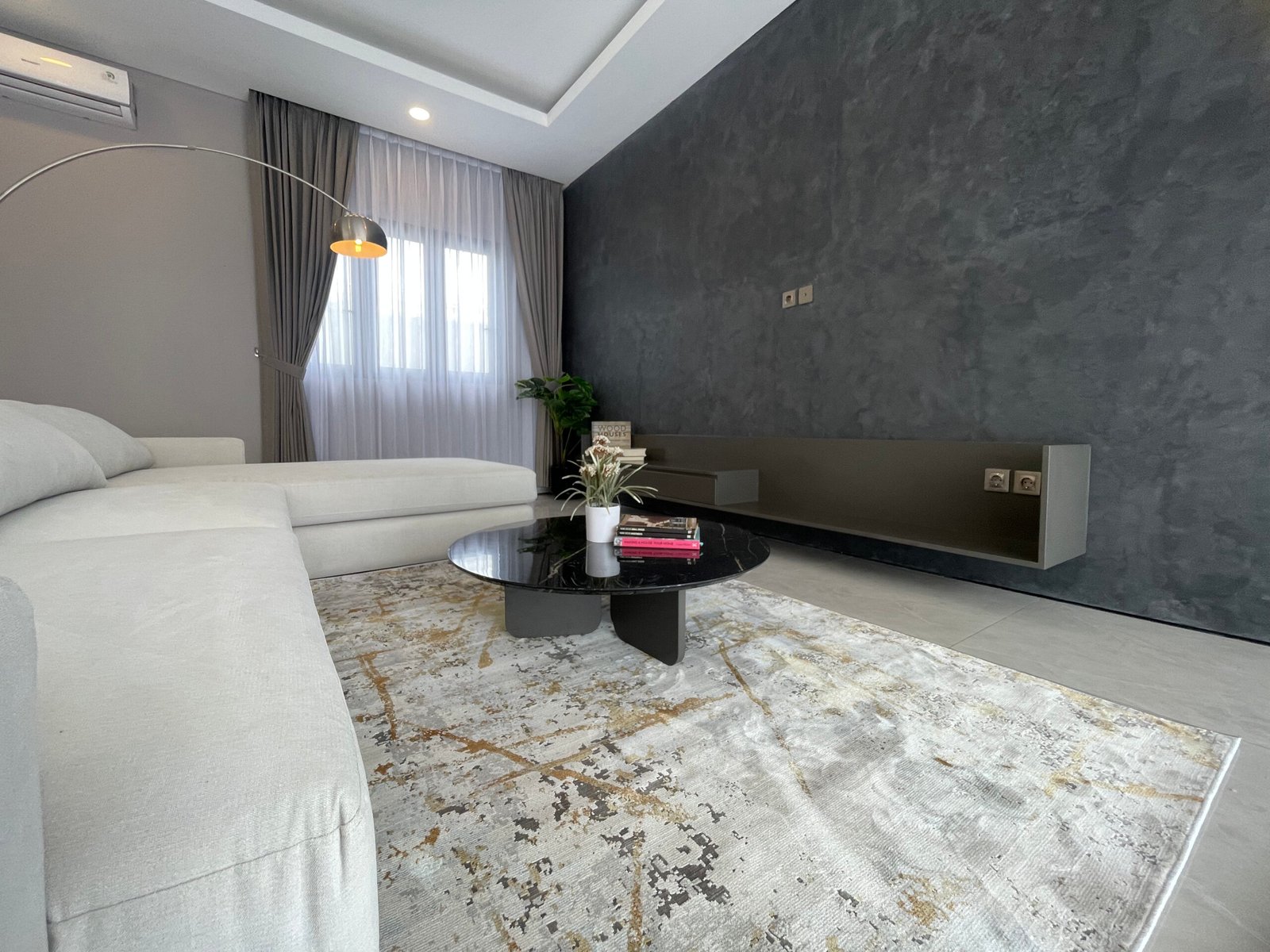 Luas & Terang: dominasi warna netral putih-abu membuat ruangan terasa lebih lapang.